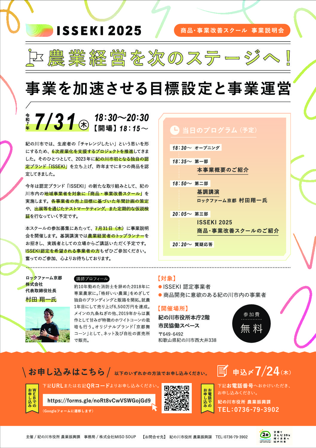 紀の川市認定ブランド「ISSEKI」の 次の募集は来年度を予定しております