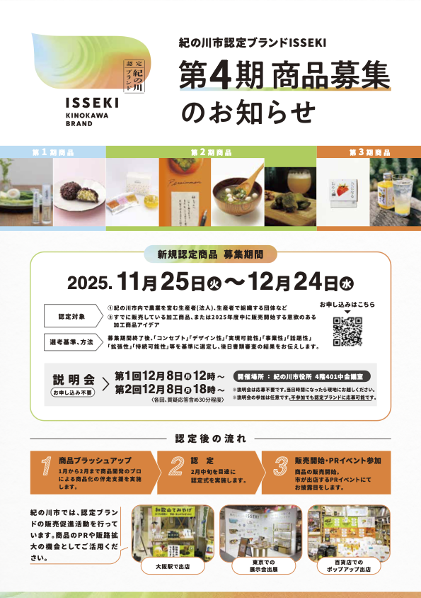 紀の川市認定ブランド「ISSEKI」の第4期商品募集を開始しました。